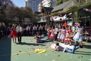 La ceremonia estuvo marcada por un profundo sentido de identidad nacional, en la que los alumnos rindieron homenaje a nuestras tradiciones a través de danzas folclóricas, interpretaciones musicales, payas y representaciones culturales. La jornada culminó con el tradicional pie de cueca de los alumnos de 4th Year.